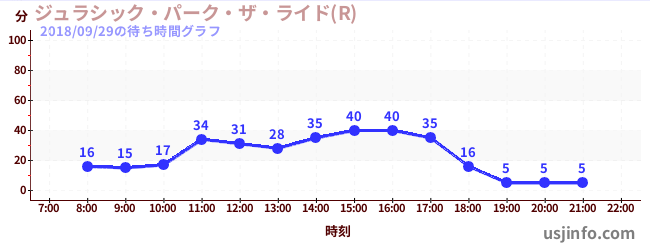 • ジュラシック・パーク・ザ・ライド(R)$B$N(B2018年09月29日の待ち時間