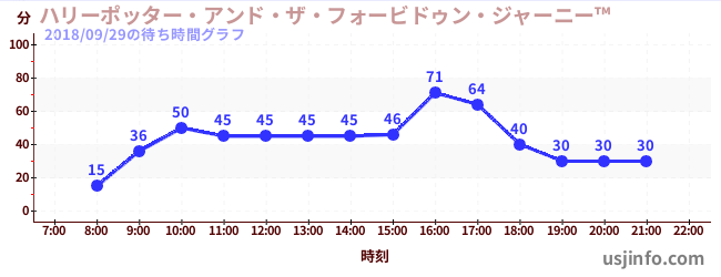 • ハリーポッター・アンド・ザ・フォービドゥン・ジャーニー™$B$N(B2018年09月29日の待ち時間