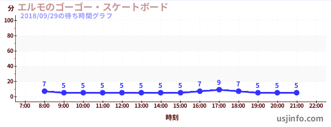 • エルモのゴーゴー・スケートボード$B$N(B2018年09月29日の待ち時間