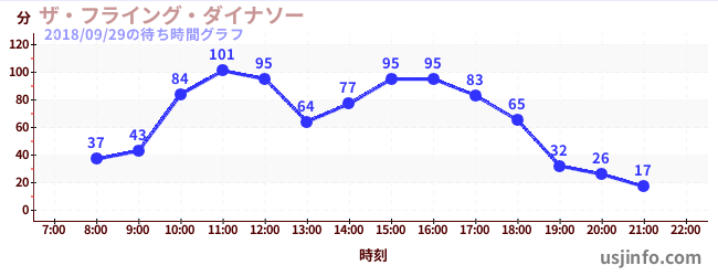 • ザ・フライング・ダイナソー$B$N(B2018年09月29日の待ち時間