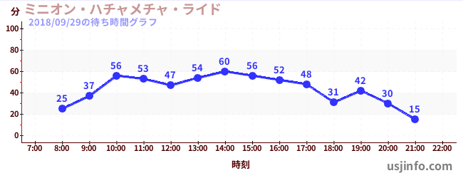 • ミニオン・ハチャメチャ・ライド$B$N(B2018年09月29日の待ち時間
