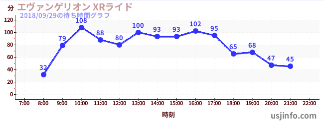 • エヴァンゲリオン XRライド$B$N(B2018年09月29日の待ち時間