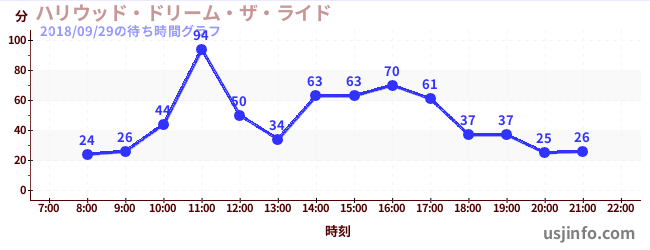 • ハリウッド・ドリーム・ザ・ライド$B$N(B2018年09月29日の待ち時間