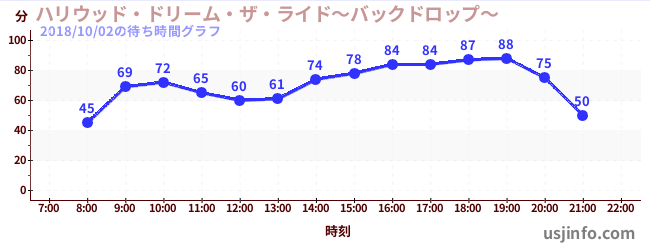 • ハリウッド・ドリーム・ザ・ライド〜バックドロップ〜$B$N(B2018年10月02日の待ち時間