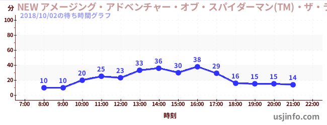 • NEW アメージング・アドベンチャー・オブ・スパイダーマン(TM)・ザ・ライド 4K3D$B$N(B2018年10月02日の待ち時間