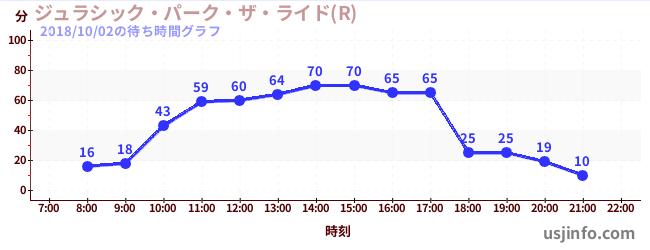 • ジュラシック・パーク・ザ・ライド(R)$B$N(B2018年10月02日の待ち時間
