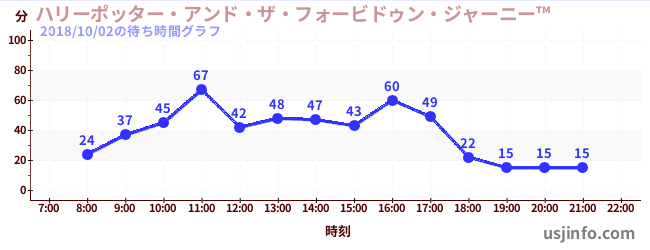 • ハリーポッター・アンド・ザ・フォービドゥン・ジャーニー™$B$N(B2018年10月02日の待ち時間
