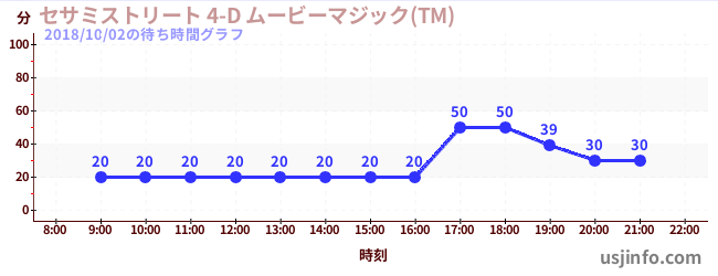 • セサミストリート 4-D ムービーマジック(TM)$B$N(B2018年10月02日の待ち時間