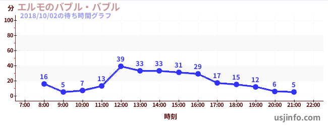 • エルモのバブル・バブル$B$N(B2018年10月02日の待ち時間