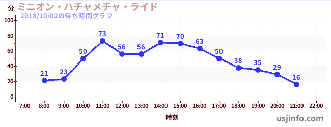 • ミニオン・ハチャメチャ・ライド$B$N(B2018年10月02日の待ち時間