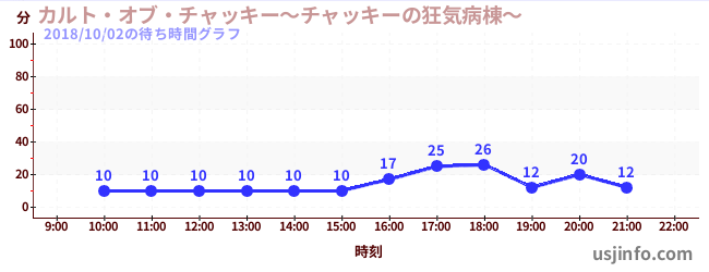 • カルト・オブ・チャッキー~チャッキーの狂気病棟~$B$N(B2018年10月02日の待ち時間
