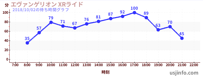 • エヴァンゲリオン XRライド$B$N(B2018年10月02日の待ち時間