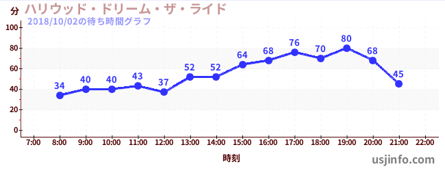 • ハリウッド・ドリーム・ザ・ライド$B$N(B2018年10月02日の待ち時間