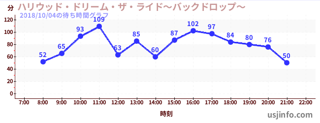 • ハリウッド・ドリーム・ザ・ライド〜バックドロップ〜$B$N(B2018年10月04日の待ち時間