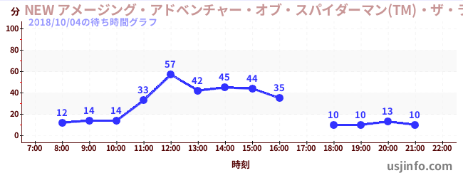 • NEW アメージング・アドベンチャー・オブ・スパイダーマン(TM)・ザ・ライド 4K3D$B$N(B2018年10月04日の待ち時間