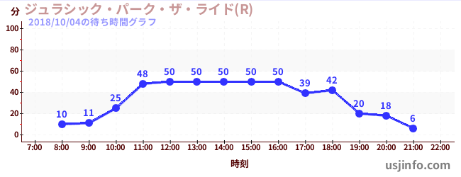 • ジュラシック・パーク・ザ・ライド(R)$B$N(B2018年10月04日の待ち時間
