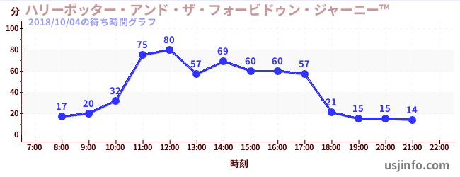 • ハリーポッター・アンド・ザ・フォービドゥン・ジャーニー™$B$N(B2018年10月04日の待ち時間
