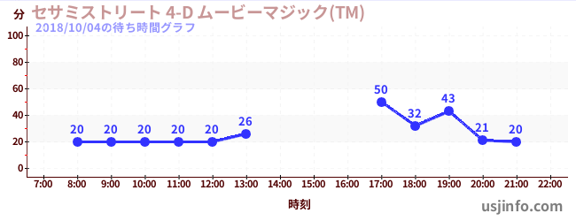 • セサミストリート 4-D ムービーマジック(TM)$B$N(B2018年10月04日の待ち時間