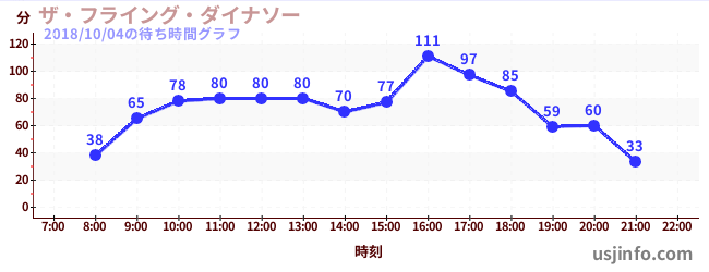• ザ・フライング・ダイナソー$B$N(B2018年10月04日の待ち時間