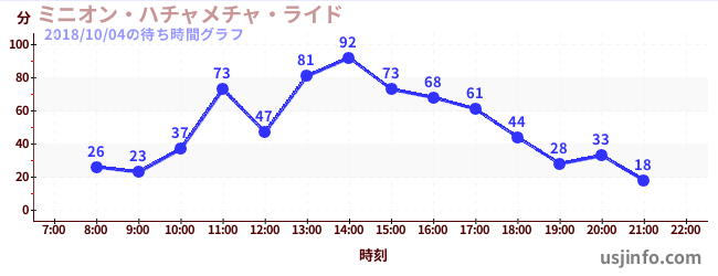 • ミニオン・ハチャメチャ・ライド$B$N(B2018年10月04日の待ち時間