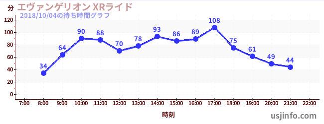 • エヴァンゲリオン XRライド$B$N(B2018年10月04日の待ち時間