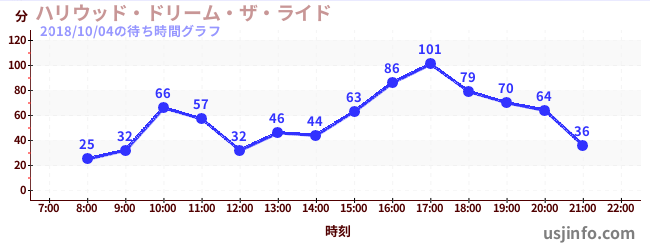 • ハリウッド・ドリーム・ザ・ライド$B$N(B2018年10月04日の待ち時間