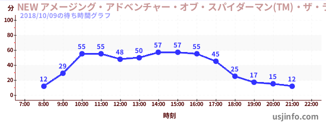 • NEW アメージング・アドベンチャー・オブ・スパイダーマン(TM)・ザ・ライド 4K3D$B$N(B2018年10月09日の待ち時間