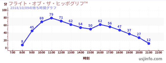 • フライト・オブ・ザ・ヒッポグリフ™$B$N(B2018年10月09日の待ち時間