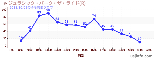 • ジュラシック・パーク・ザ・ライド(R)$B$N(B2018年10月09日の待ち時間