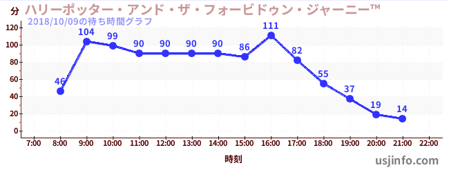 • ハリーポッター・アンド・ザ・フォービドゥン・ジャーニー™$B$N(B2018年10月09日の待ち時間