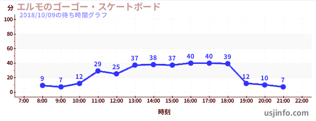 • エルモのゴーゴー・スケートボード$B$N(B2018年10月09日の待ち時間