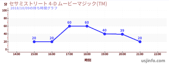 • セサミストリート 4-D ムービーマジック(TM)$B$N(B2018年10月09日の待ち時間