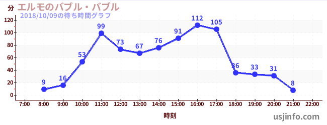 • エルモのバブル・バブル$B$N(B2018年10月09日の待ち時間