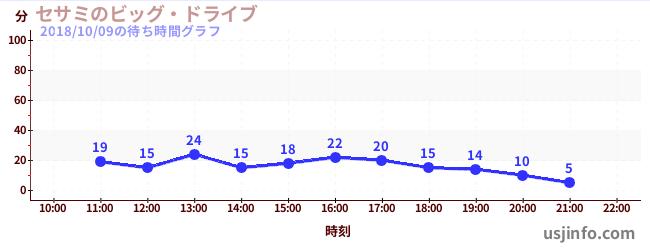 • セサミのビッグ・ドライブ$B$N(B2018年10月09日の待ち時間