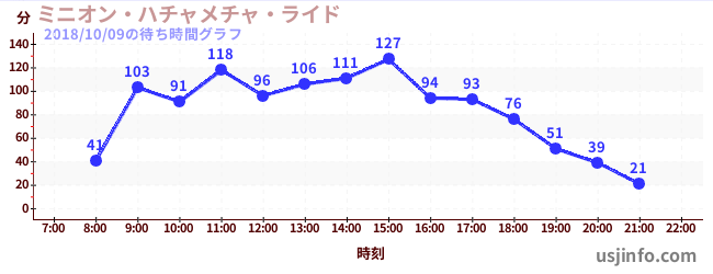 • ミニオン・ハチャメチャ・ライド$B$N(B2018年10月09日の待ち時間