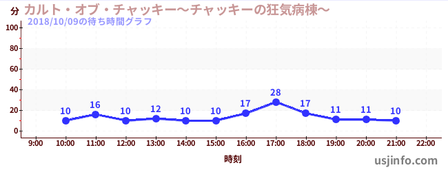 • カルト・オブ・チャッキー~チャッキーの狂気病棟~$B$N(B2018年10月09日の待ち時間