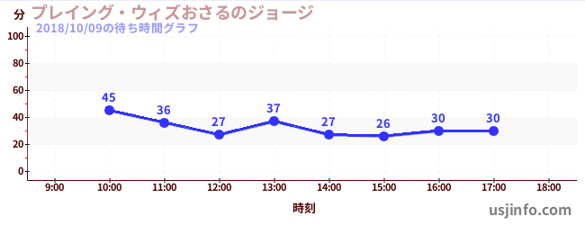 • プレイング・ウィズおさるのジョージ$B$N(B2018年10月09日の待ち時間