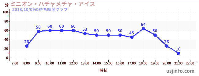 • ミニオン・ハチャメチャ・アイス$B$N(B2018年10月09日の待ち時間