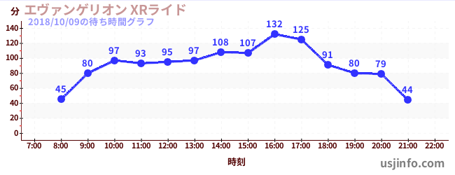• エヴァンゲリオン XRライド$B$N(B2018年10月09日の待ち時間