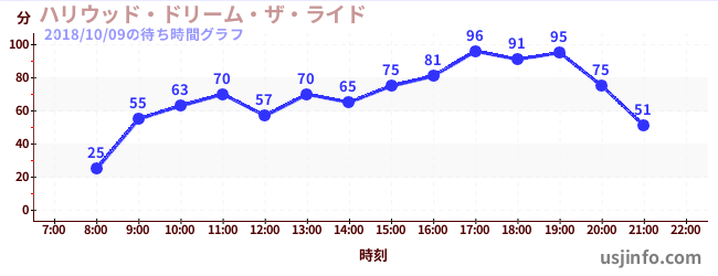 • ハリウッド・ドリーム・ザ・ライド$B$N(B2018年10月09日の待ち時間
