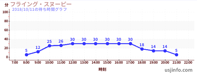 • フライング・スヌーピー$B$N(B2018年10月11日の待ち時間