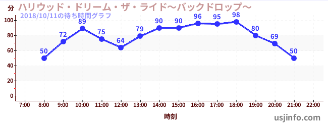 • ハリウッド・ドリーム・ザ・ライド〜バックドロップ〜$B$N(B2018年10月11日の待ち時間