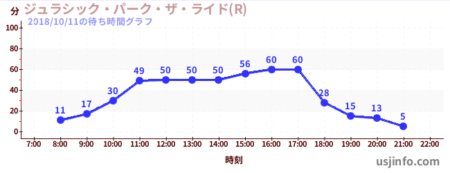 • ジュラシック・パーク・ザ・ライド(R)$B$N(B2018年10月11日の待ち時間
