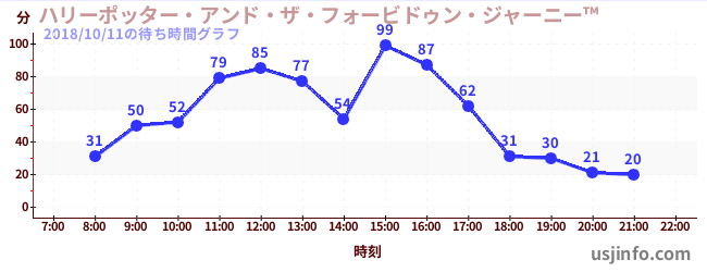 • ハリーポッター・アンド・ザ・フォービドゥン・ジャーニー™$B$N(B2018年10月11日の待ち時間
