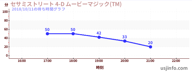 • セサミストリート 4-D ムービーマジック(TM)$B$N(B2018年10月11日の待ち時間