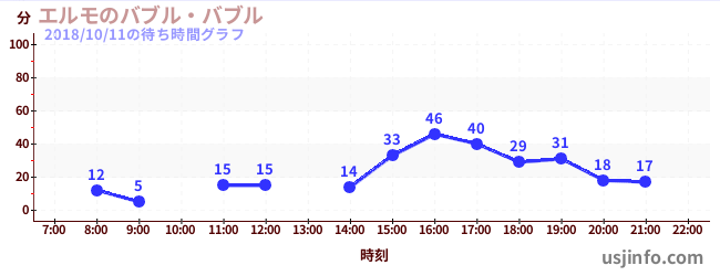 • エルモのバブル・バブル$B$N(B2018年10月11日の待ち時間