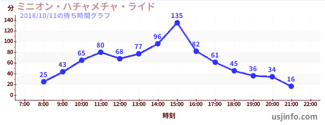 • ミニオン・ハチャメチャ・ライド$B$N(B2018年10月11日の待ち時間