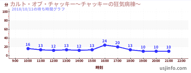 • カルト・オブ・チャッキー~チャッキーの狂気病棟~$B$N(B2018年10月11日の待ち時間