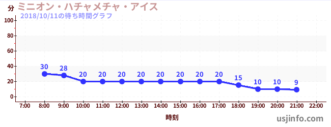• ミニオン・ハチャメチャ・アイス$B$N(B2018年10月11日の待ち時間