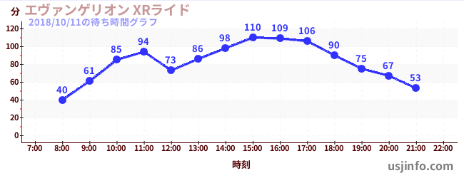 • エヴァンゲリオン XRライド$B$N(B2018年10月11日の待ち時間